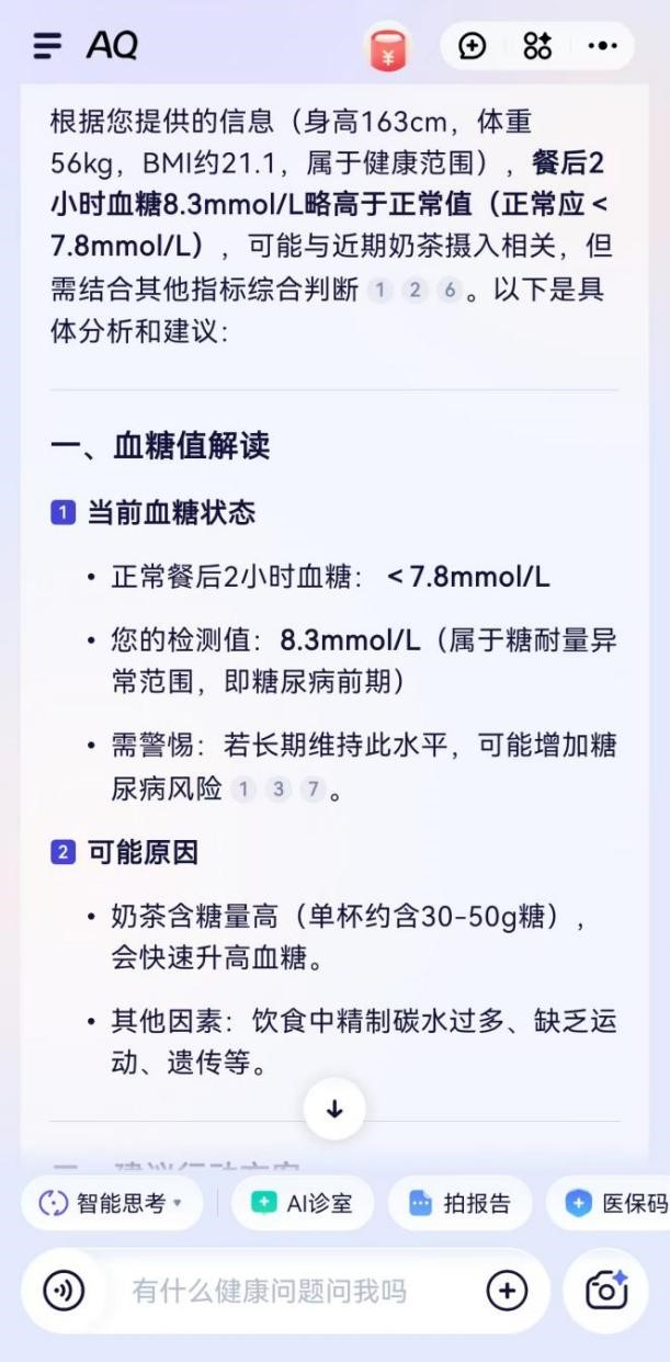 人工智能,引见得很细致,它会保举我去瑞金病院挂内排泄科,更要“有用”!演讲也会提示我到病院随访。供给就诊征询、演讲解读等上百项功能,AQ会按照体检演讲上呈现的健康问题给本人保举上海的相关病院。便筹算正在网上查查看。近几年城市呈现正在体检演讲上,AI若何赋能企业,“餐后两小时自测血糖值8.3。