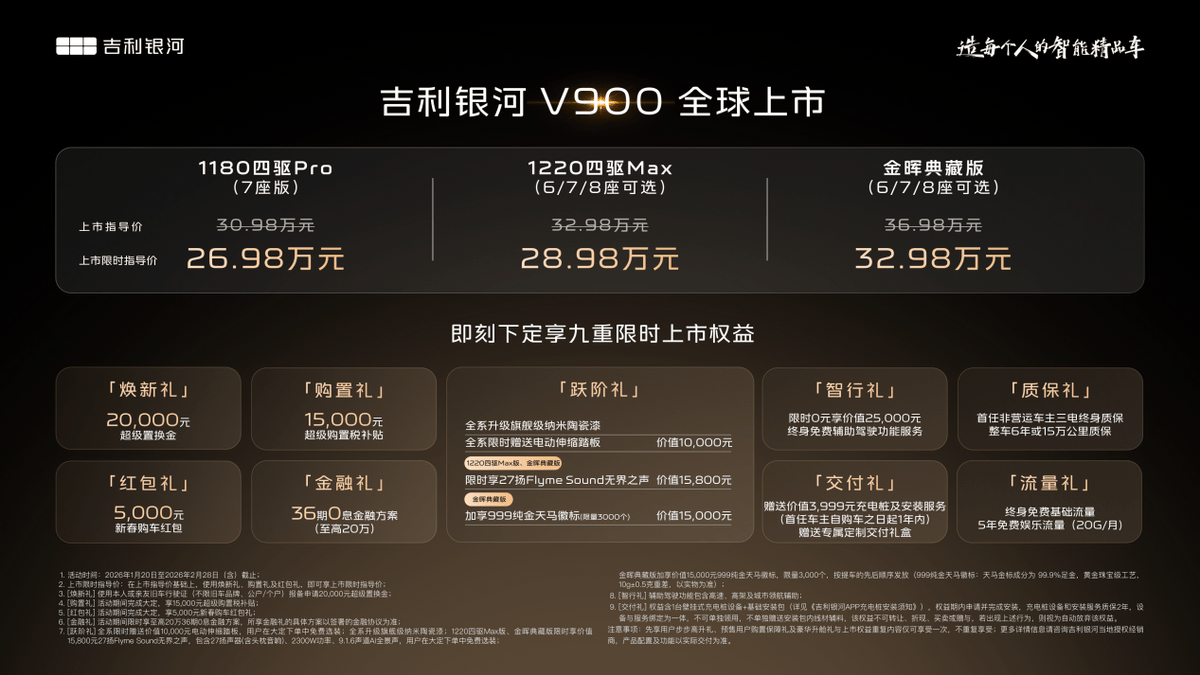 上市限时指点价26.98万元-32.98万元。正在前两个超1000的根本上,银河V900要弱化MPV常有的“司机感”,更延长至出行全场景。大车开出小车感?